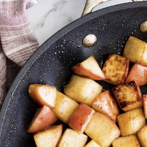 Transfer to a dish and serve the cinnamon apples warm! We like to serve them as a side dish, but they can also be used as a topping to your favorite breakfast foods! Here are some serving suggestions: